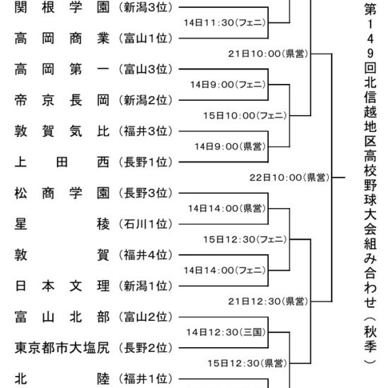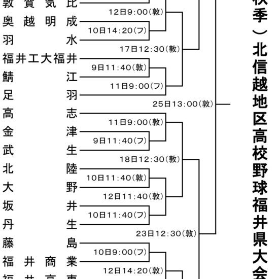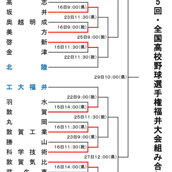 来春のセンバツに繋がる秋の福井県大会の組合せが決まりました。 敦賀高校は9月9日啓新高校と敦賀運動公園野球場第一試合で対戦となりました。 皆様、応援よろしくお願い致します!