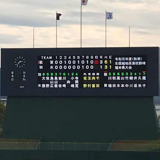 啓 進|101 000 002|4 敦 賀|000 000 000|0 残念ながら上記の結果となりました 1,2回戦を振り返り、甲子園出場を目指すためには何が必要かを考えて、取り組みながら、三年生は残りわずかな日々の練習