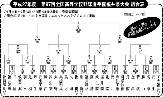 2015年6月26日組合せ抽選会がありました 敦高野球部は7/12(日)敦賀運動公園野球場 9:00~ VS丸岡高校 と対戦です。 応援よろしくお願いいたします <福井新聞より抜粋>