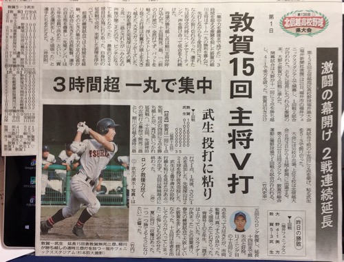 今日7/26は福井県大会準決勝 第1試合は、福商対坂井 0対2 第2試合は、敦賀対武生商 4対3 敦高見事に勝利です。 なんと、決勝戦進出は18年ぶり! 1999年甲子園出場して以来です。 明日は坂井高校対敦賀高校 10