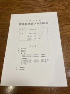 敦賀高校野球部の総会並びに懇親会を令和5年5月20日(土)に開致しました。