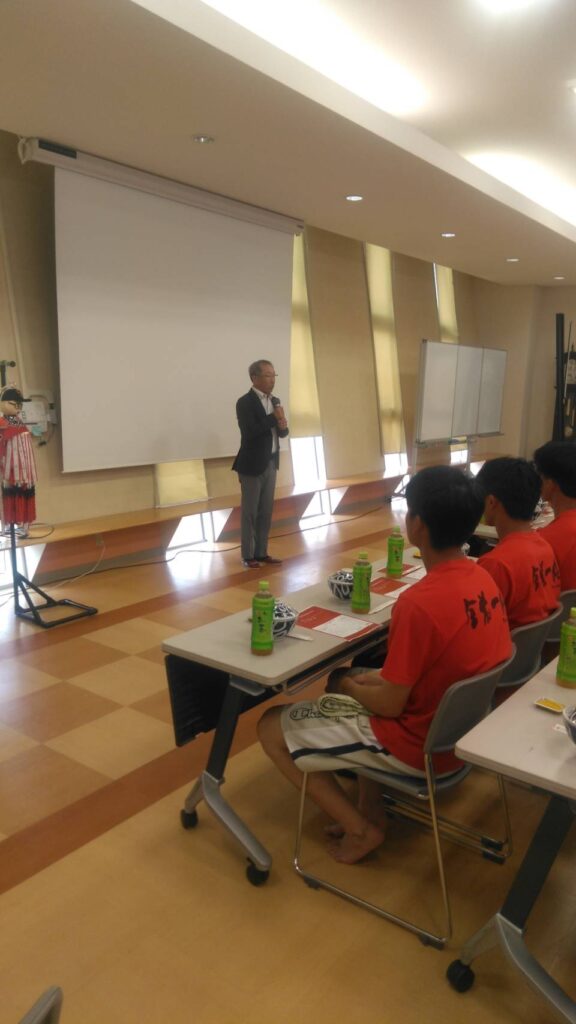 田辺OB会長が現役選手の激励にご挨拶に伺いました。