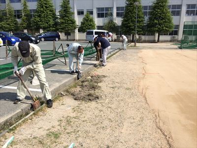 その中庭を5/3、4と敦高野球部OBの方と現在の保護者の方たちで
