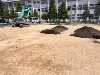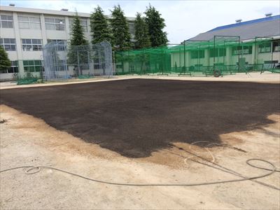 学校側では今年度、ボールが外に出ないようにネット(黒土の左右と上?)を張って頂けるようになるみたいです