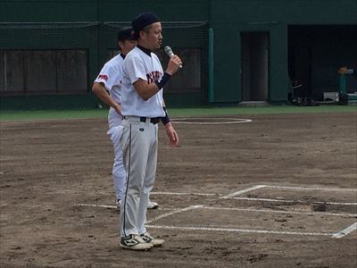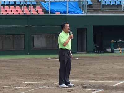 HD杯争奪選手権大会 Posted on: 2015年8月29日 by: 管理者 「HD杯争奪選手権大会」 平成12年度卒業のOBの仲間の一人が不慮の事故により亡くなったのがきっかけで 追悼の想いから始まったこの野球大会です。もうずいぶんの年月が経ちます。 平成12年度のOBの2級ぐらいの先輩・後輩が集まって年に一度の野球に汗を流します。 現役当時の身体の切れはないものの気持ちは、高校生なみです! その会場へ尾上会長が出向き、追悼の意味を込めて、怪我なくアグレッシブなプレーを期待しますと 一言挨拶をさせていただきました。
