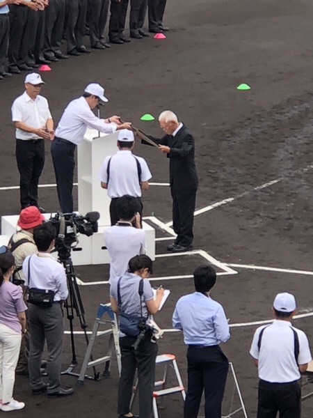 功労者表彰 Posted on: 2018年7月14日 by: 管理者 7/12 夏大会の開会式が行われました。 その際、靏野郁夫氏が表彰されました。 おめでとうございました。 今後もご健康でご活躍されることをお祈りいたします。